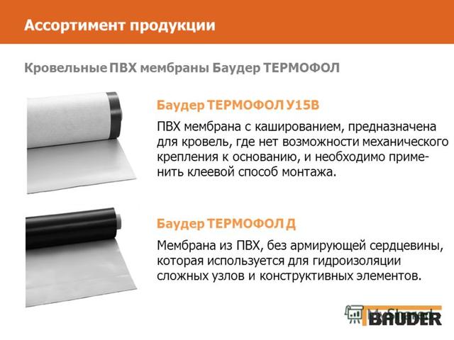 - BAUDER M (Баудер М) - кровли с механическим креплением, для устройства новых и реконструкции старых крыш, гидроизоляции террас