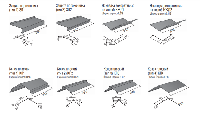 Конек і спеціальні планки. для покрівлі та фасаду.