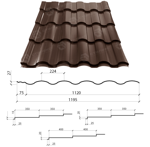 Металочерепиця від виробника "Сталекс Профі" "VALENCIA" 0,50 мм PEMA RAL 8017 Німеччина.
